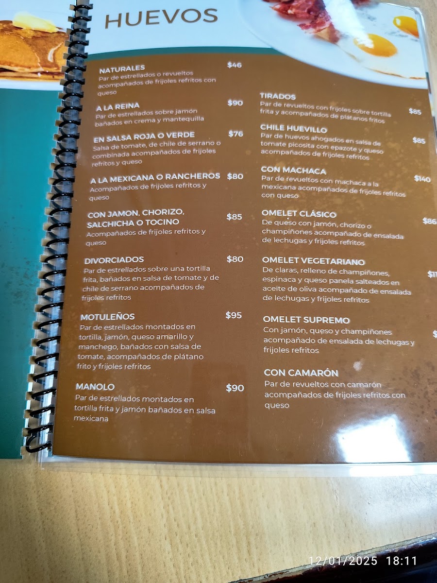The menu at Cafe Manolo offers a variety of traditional Mexican breakfast and lunch dishes alongside a selection of coffee and other beverages. It is organized around hearty main courses, drinks, and desserts suitable for morning meals, casual dining, or coffee breaks.
